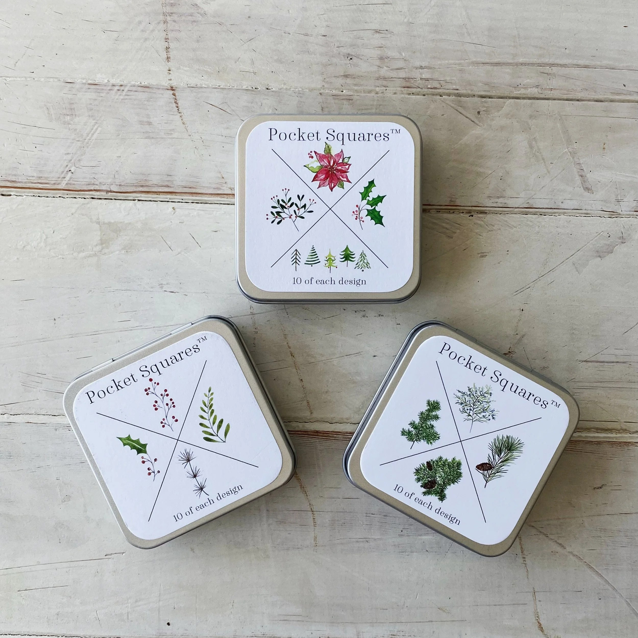 Get ready to turn these seasonal Pocket Squares into Gift Tags, Gift Enclosures, Place Cards.