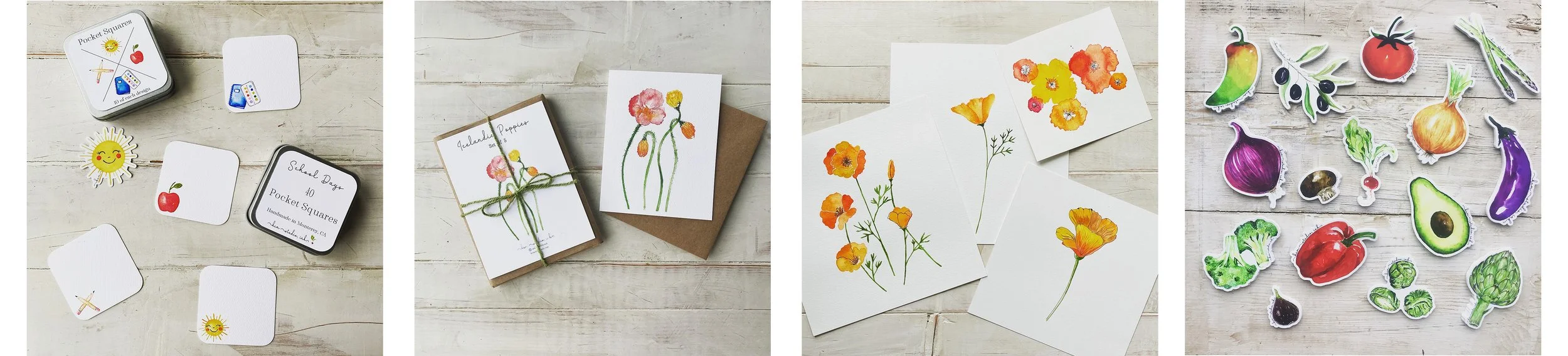 Colorful circle of various fruits and vegetables surrounding the text 'Find me at the Farmers' Market.'